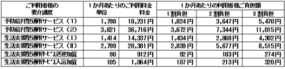 2)北九州市予防給付型・生活支援型通所サービスご利用料金(介護保険適用)